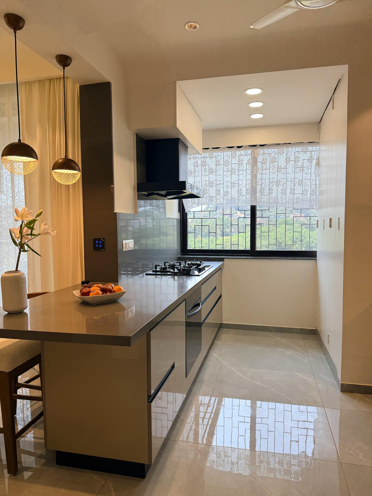 Het geeft lucht en maakt de keuken minder “blokkerig”.